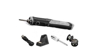 The radio soldering iron is a rechargeable portable soldering iron with a built-in 1500mAh large capacity lithium-ion battery that can last up to 40 minutes of continuous use and 5-10 days of continuous use with indirect use. The latest design features a reinforced soldering iron tip and temperature control circuit with LED lights on the front for easy use in low-light environments. Suitable for all PCB boards.