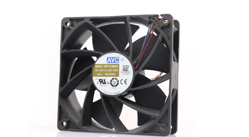 The original AVC DBPJ1238B2G 12038 12V 3.12A cooling fan adopts double ball bearings, 4-wire PWM temperature control, suitable for Avalon, Innosilicon, Ebit, Antminer, Whatsminer miner chassis cooling, provides stable airflow for miner operation, and ensures timely cooling of miners.