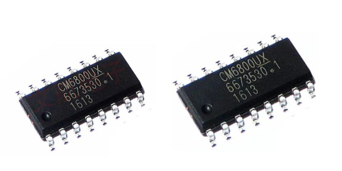 The CM6800 is a controller for power factor-corrected switch mode power supplies. Power Factor Correction (PFC) allows smaller, lower-cost bulk capacitors, reducing power line loading and stress on switching FETs. The CM6800 includes circuits for implementing leading edge, average current, "boost" type power factor correction and trailing edge, and pulse width modulator (PWM). A 1A capable gate driver minimizes the need for external driver circuitry. Low power requirements increase efficiency and reduce component costs.