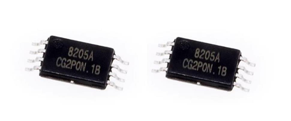 FS8205A is a 20V 6A 25mΩ@4.5V, 4A 1W 2 N-Channel MOSFETs ROHS marked 8205A on the silk screen. It adopts TSSOP-8 packaging technology. It is used to replace the faulty components on the S19 pro hash board.