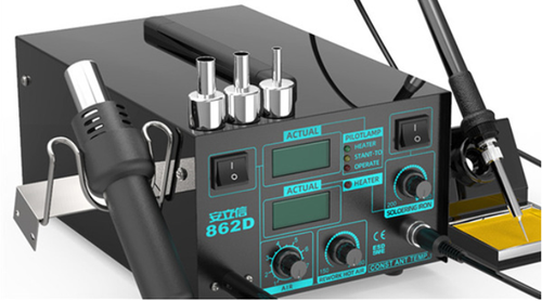 Welcome to choose our company's high-quality product, the 862D dual-digital anti-static hot air gun desoldering station. This product has 4 major advantages: two-in-one soldering iron air gun, temperature controllable, strong wind, and rapid heating.
